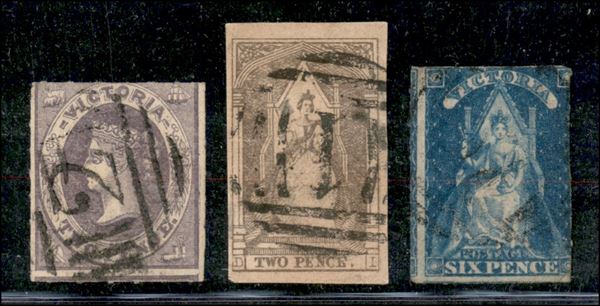 Victoria - 1852/1857 - 3 valori (4 + 12 + 13) usati - da esaminare