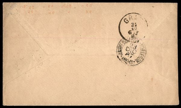 Vittorio Emanuele II (14/15) + Umberto 10 cent (38) due colori diversi su busta da Palermo 20.12.1887 per Graz