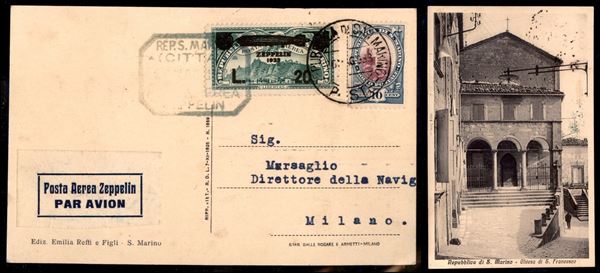 Zeppelin - 20 lire (16 - Aerea) + complementare su cartolina per Milano del 26.5.33 (2.000)