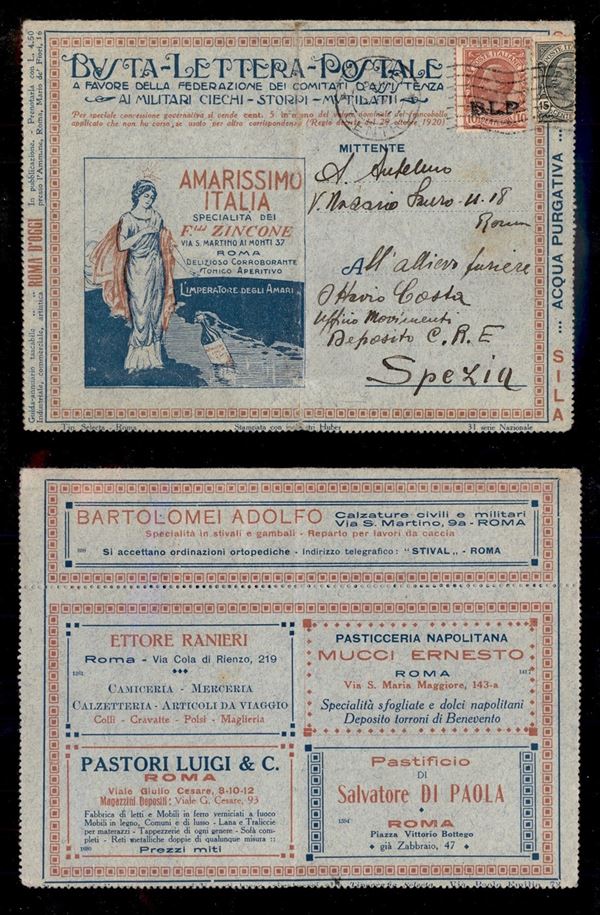 10 cent (13A - azzurra) su busta speciale (31 Nazionale) da Roma a Spezia del 5.7.23 - complementare (108) strappato con l'uso