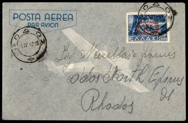 10 dracme (1) usato su busta FDC - Rodi 1.4.47