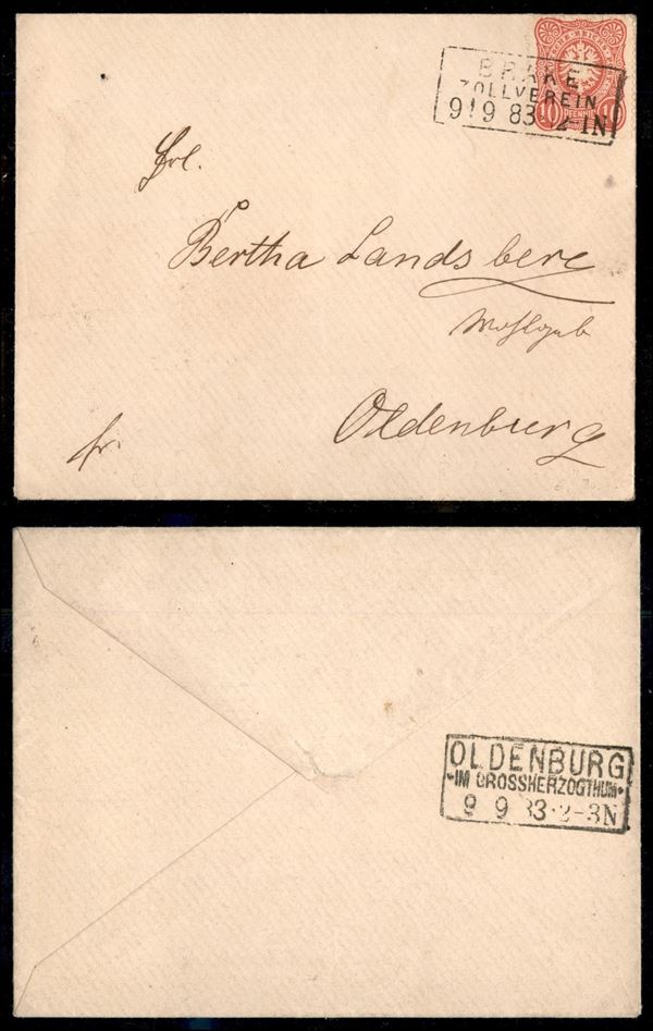 10 pfennig (41) su busta da Brake Zollverein a Oldenburg del 9.9.83