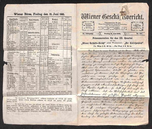 1,05 kreuzer lilla grigio (10a - Giornali) su stampato da Trento del 21.6.61 - strappato in basso con l’indirizzo