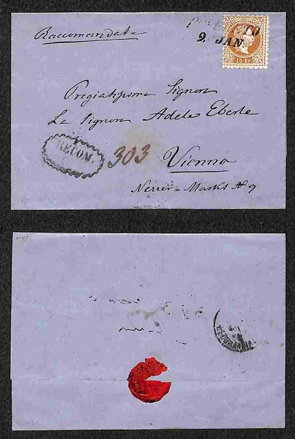 15 kreuzer (36) su raccomandata da Rovereto a Vienna del 9.1.72