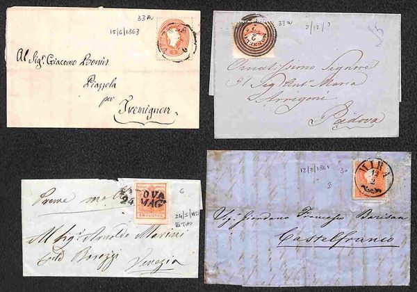 1853/1863 - Piccolo insieme di 4 letterine con affrancature e annullamenti diversi - da esaminare