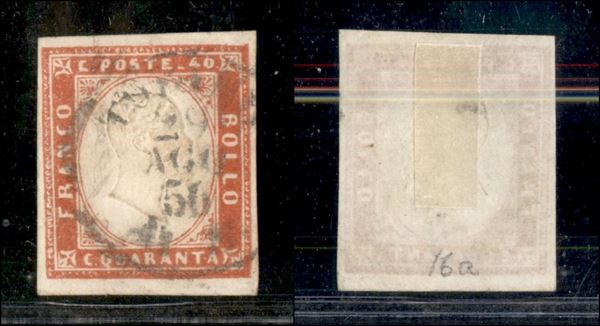 1855 - 40 cent (16a - vermiglio) usato a Torino il 29.8.56