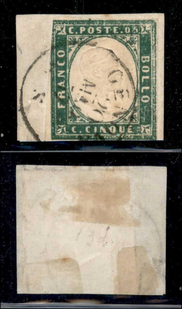 1857 - 5 cent (13d - verde smeraldo chiaro) usato su frammento - corto in alto a sinistra (950)