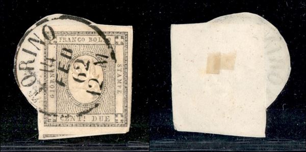 1861 - 2 cent (20) usato su frammento - Torino 14.2.62