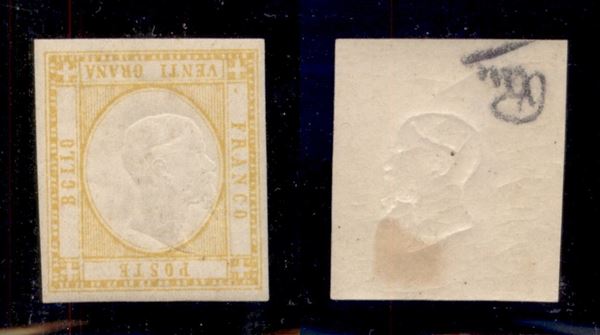 1861 - 20 grana giallo (23) con effigie falsa capovolta - gomma originale