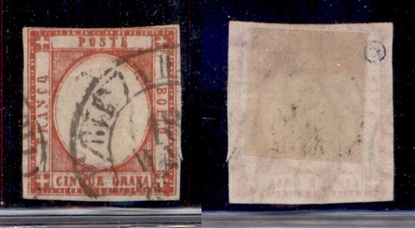 1861 - 5 grana (21) usato appena corto in alto - colore carico e stampa confusa