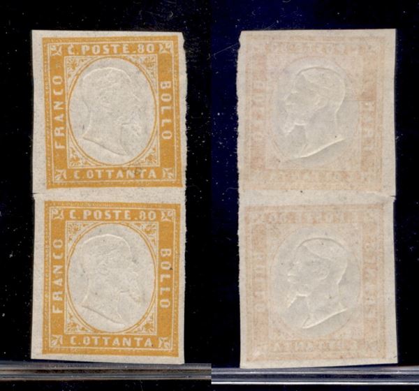 1861 - 80 cent (17C) - coppia verticale disallineata - gomma originale (integra in basso)