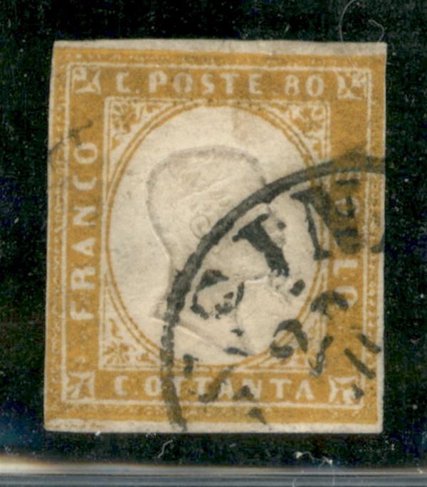 1862 - 80 cent (17D) - usato a Messina - margini completi (rasenti)