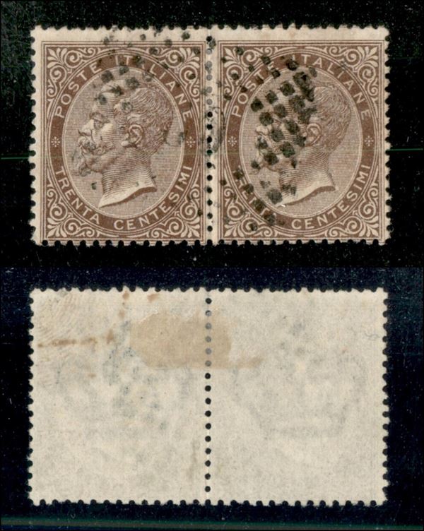 1863 – coppia del 30 cent De La rue (L19) col numerale a punti (137)
