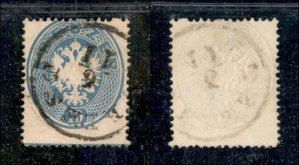1863 - 10 kreuzer (25) usato - dentellatura orizzontale spostata e riga di colore da bordo foglio in basso
