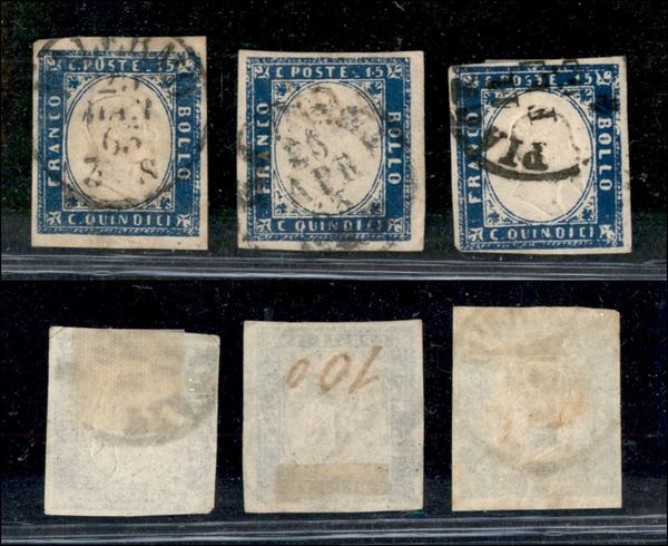 1863 - 15 cent (11) - tre pezzi usati - colori diversi - qualità da buona a ottima
