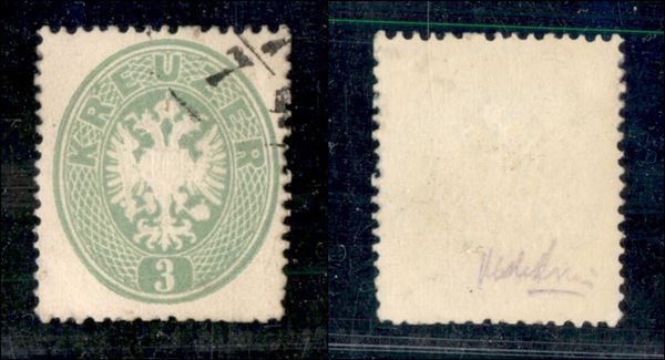 1863 - 3 kreuzer verde (25) - leggero annullo d'angolo - usato (130)