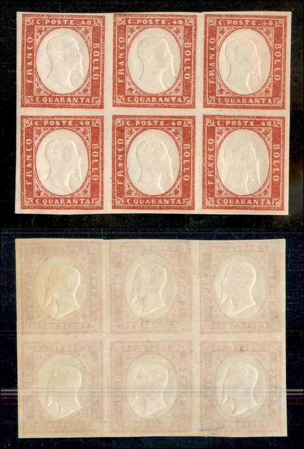 1863 - 40 cent (16F) - blocco di sei - gomma integra