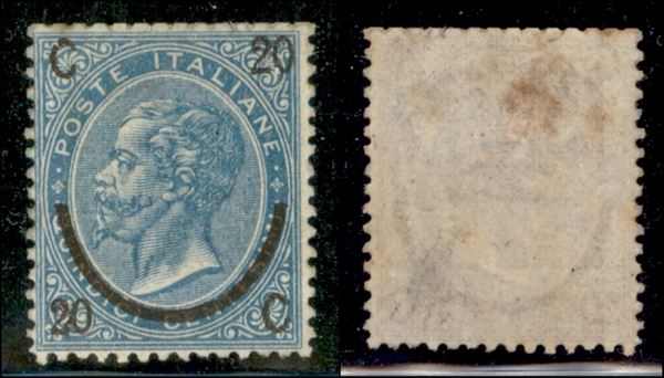 1865 - 20 cent su 15 (24) - gomma originale con invisibile traccia di linguella - leggera traccia di piega verticale e punti gialli (6500)