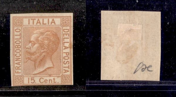 1867 - Saggi - 15 cent ocra arancio - stretto in basso - nuovo con gomma