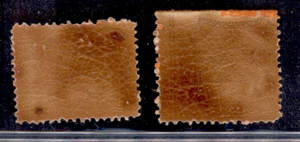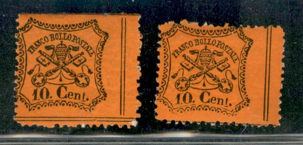 1868 - 10 cent Stemma (26) - due valori con gomma integra vetrificata bruna