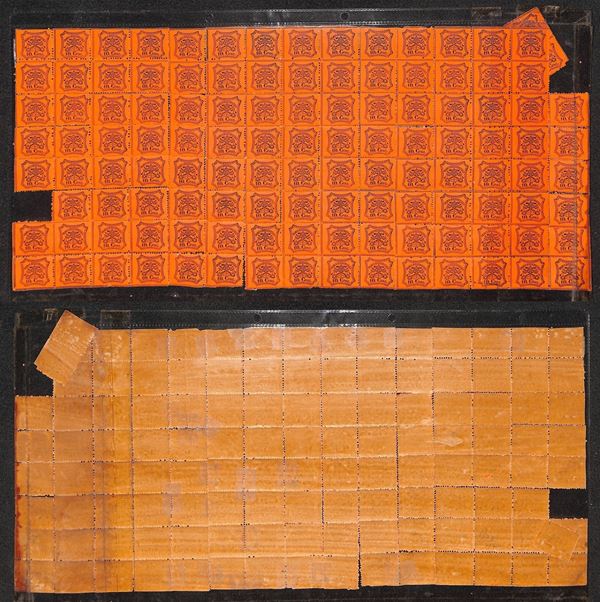 1869 - 10 cent arancio vermiglio (26) - intero foglio di 120 - gomma integra - qualche punto d’ingiallimento sulle dentellature - da esaminare