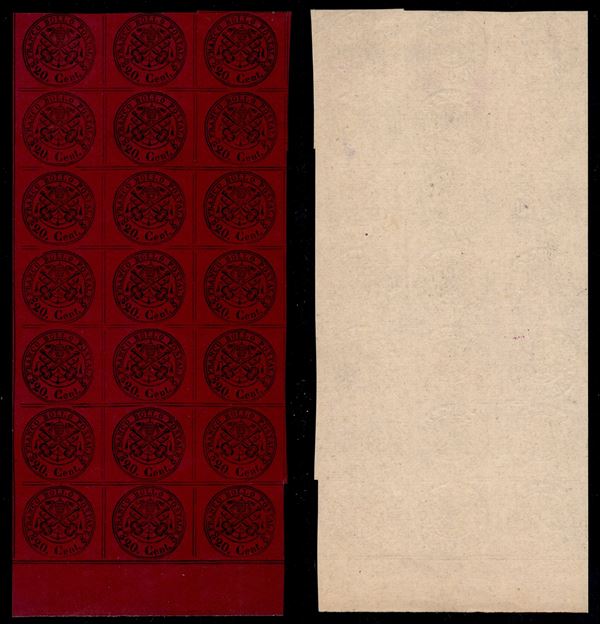 1870 - Non Ultimati - 20 cent (34) - blocco verticale bordo foglio di 21 nuovo - sempre senza gomma