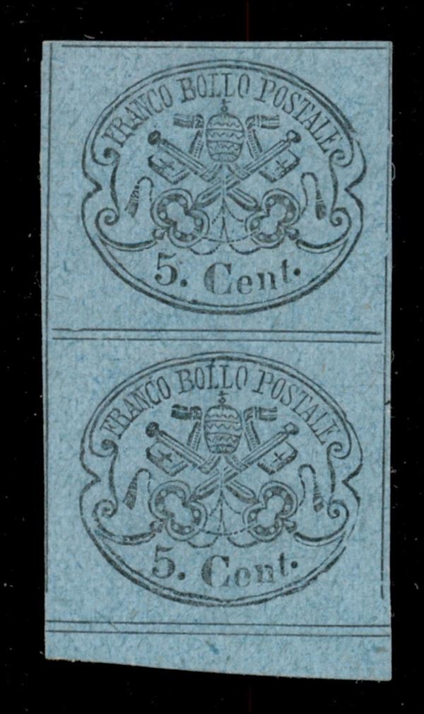 1870 - Non Ultimati - 5 cent (32) - coppia verticale bordo foglio - senza gomma (500+)