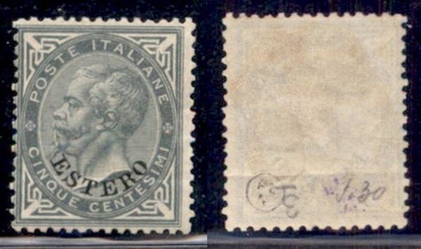 1874 - 5 cent Estero (3) - gomma originale - piega orizzontale in basso (900)