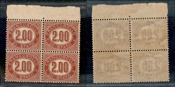 1875 - 2 lire (6) in quartina - gomma integra - centratura discreta (160+)