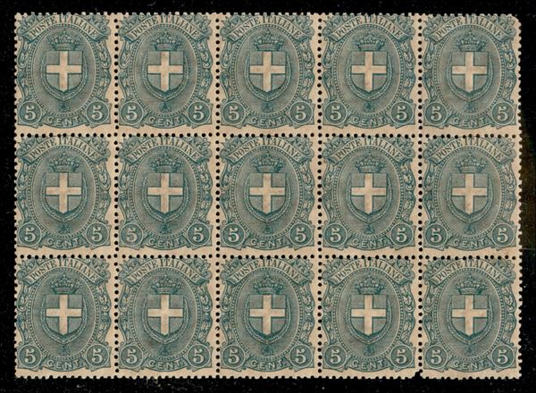 1897 - 5 cent Stemma (67) - blocco di quindici - gomma integra (950)