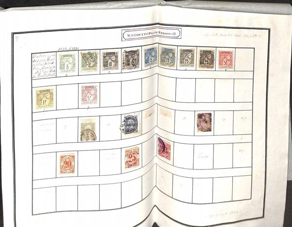 1898 – Poste Francesi – 17 valori di emissioni locali su foglio d'album artigianale