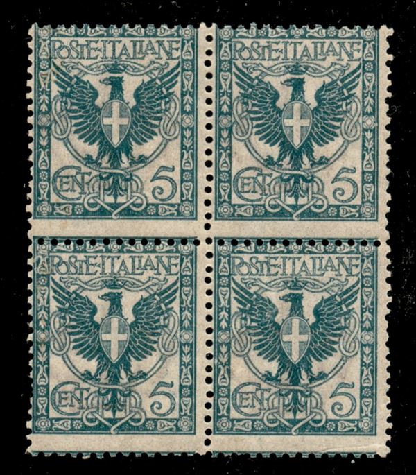 1901 - 5 cent Floreale (70) in quartina - gomma integra (2.200+)