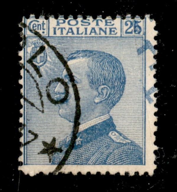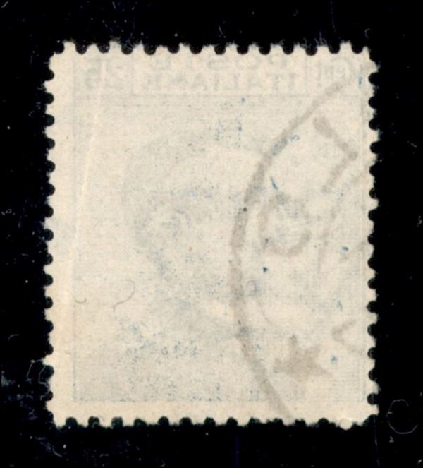 1908 - 25 cent Michetti (83 varietà) usato - parziale controstampa delle scritte marginali (per piega del foglio) sulla destra - non catalogato