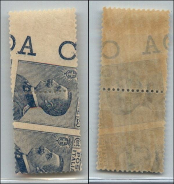 1908 - 25 cent Michetti (83nd) - coppia orizzontale con dentellatura ruotata in senso antiorario e parte del bordo - gomma originale (600+)