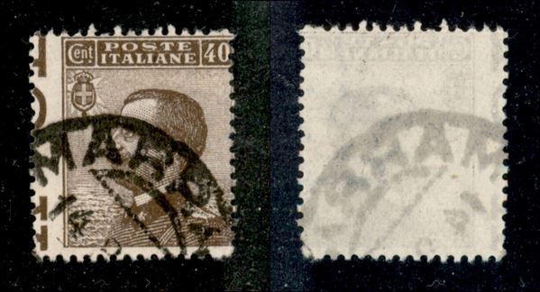 1908 - 40 cent Michetti (84mg) usato - dentellatura spostata a sinistra con scritte marginali (200)