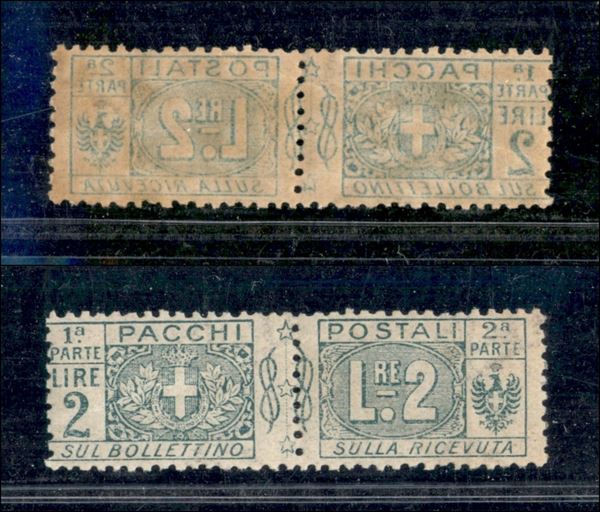 1914/1922 - 2 lire Pacchi postali (13k) - decalco - gomma integra - piega diagonale (225)
