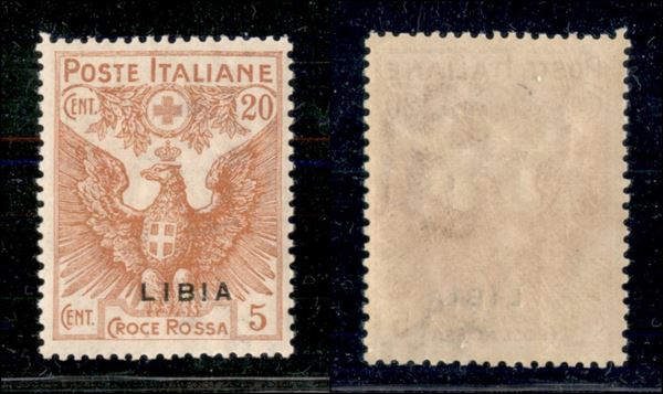 1916 - 20 + 5 cent Croce Rossa (16ac) - soprastampa sottile in basso - gomma integra - molto bello (225)