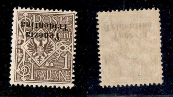 1918 – 1 cent (19aa) – soprastampa capovolta – gomma integra (450)
