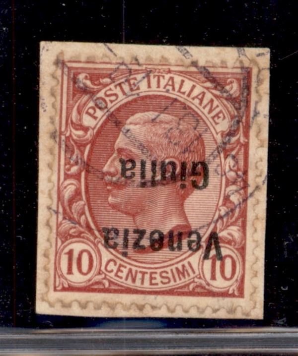 1918 - 10 cent (22a) con soprastampa capovolta usato su frammento (150)