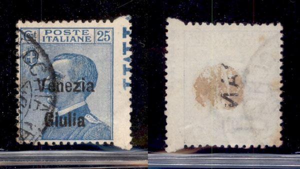 1918 - 25 cent (24ea varietà) usato - soprastampa in basso + dentellatura destra spostata sulle diciture - non catalogato