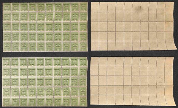 1918 - 5 heller (2) - due blocchi di 50 (foglio di 100) - gomma integra - una piega orizzontale