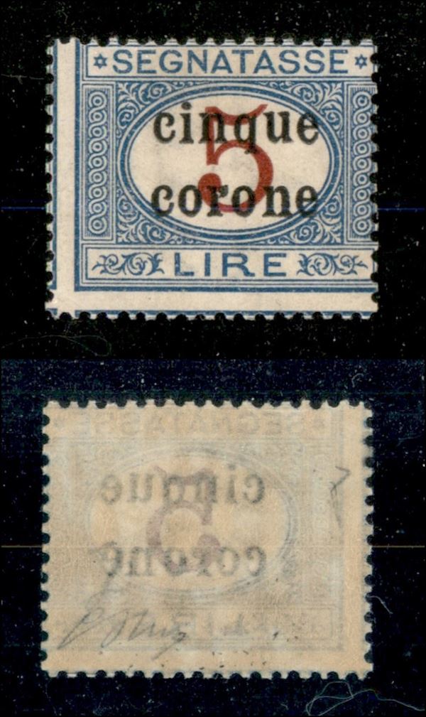1919 – 5 corone su 5 lire Segnatasse (9) – gomma originale – Oliva (220)