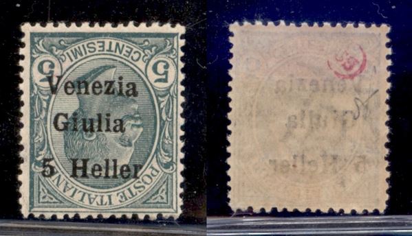 1919 - 5 heller su 5 cent (30a) con soprastampa capovolta - gomma originale (260)
