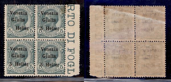 1919 - 5 heller su 5 cent (30ca + 30) - blocco di quattro senza 5 in alto a sinistra - gomma integra (con falla naturale obliqua)