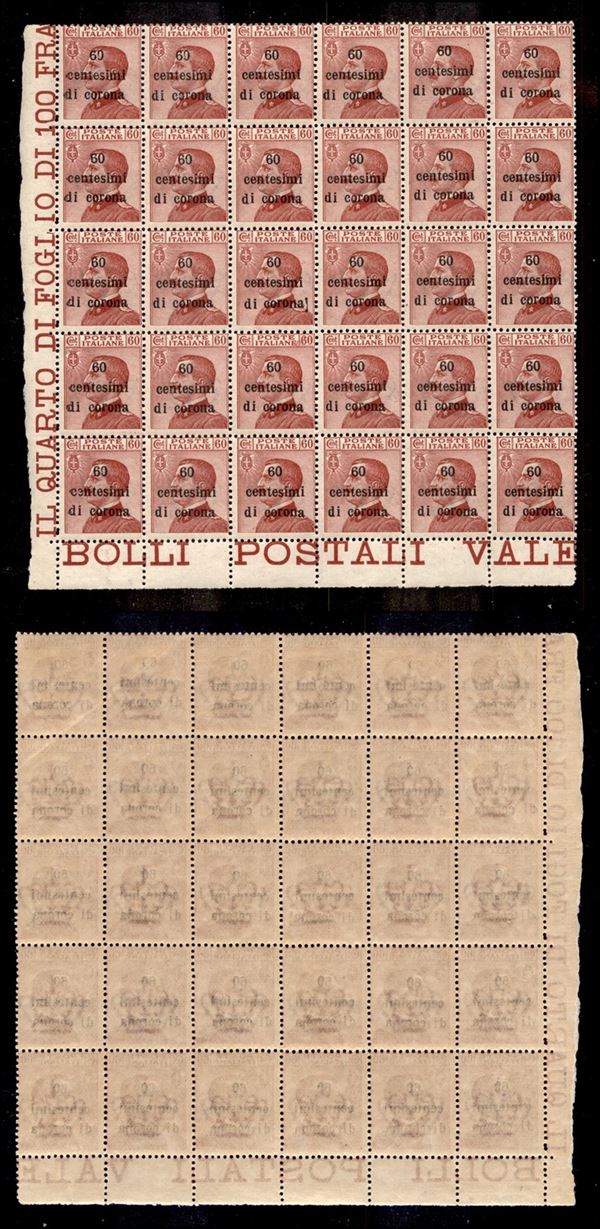 1919 - 60 cent (10) - blocco angolare di 30 - gomma integra (300+)