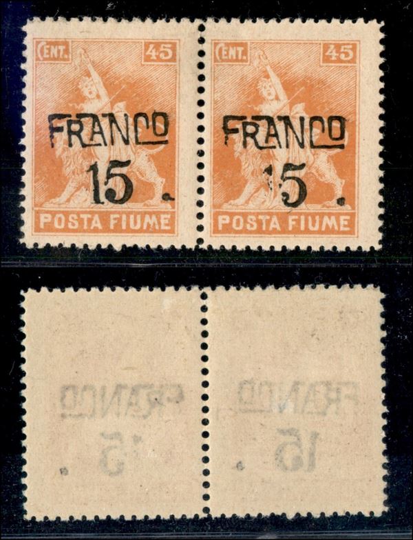 1919 - Franco 15 su 45 cent (C79t) - coppia con piccole tracce della cifra 1 a destra - gomma integra