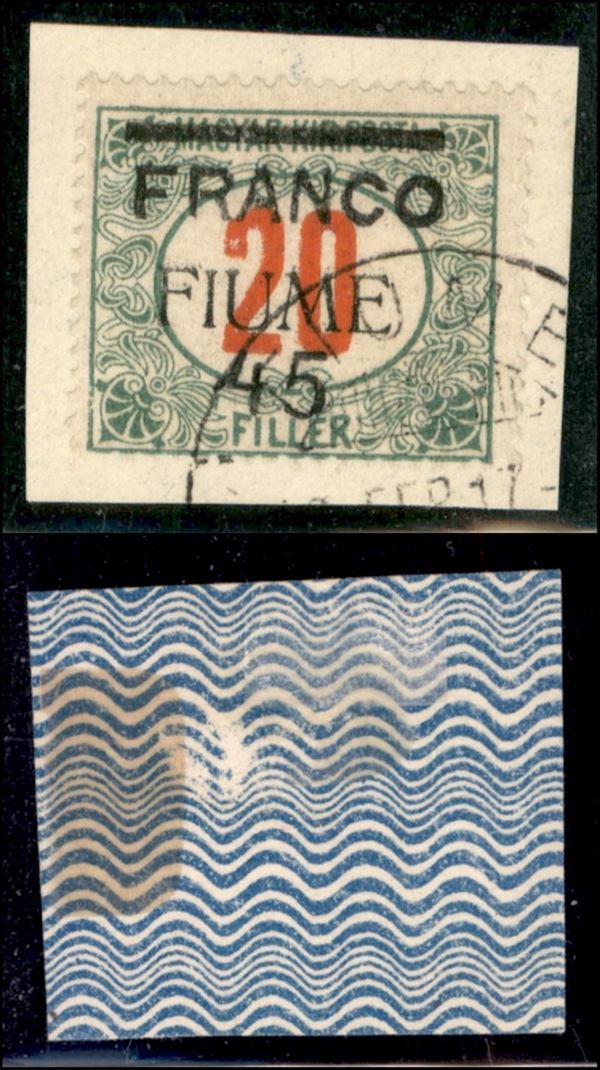 1919 - Franco 45 su 20 filler (30 varietà) - Fiume al centro - usato su frammento