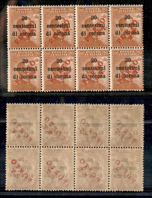 1919 - Porto S.T. su 20 cent (137) - blocco di otto - gomma integra (216+)