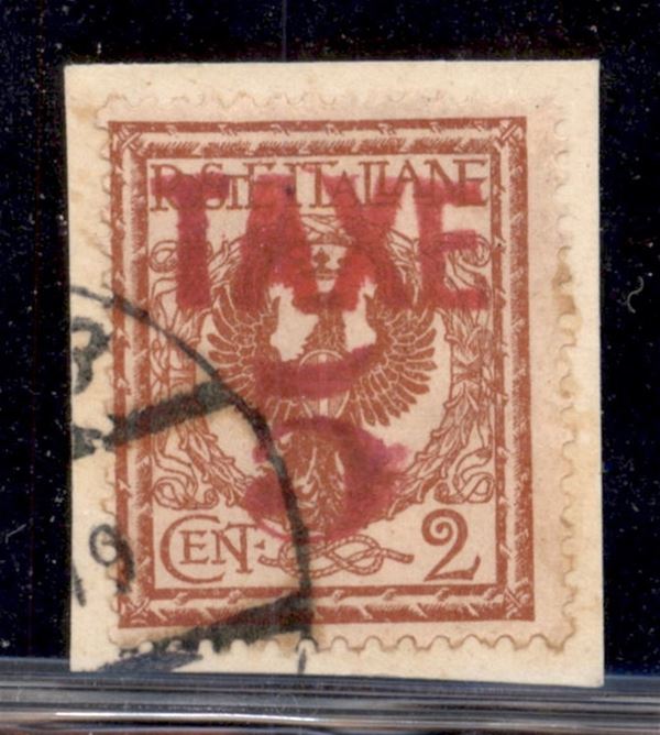 1919 - Taxe 5 (rosso) su 2 cent (76) usato su frammento (200+)