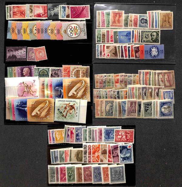 1919/1960 - Insieme di valori del periodo in serie complete su 5 cartoncini a listelli - misto gomma originale + gomma integra